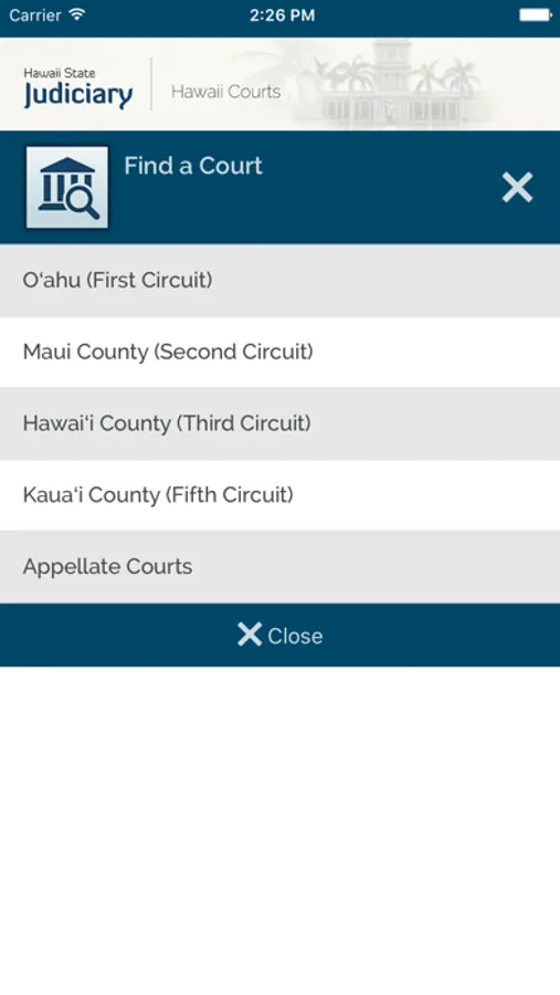 The Hawaii Courts app brings together tools and resources developed by the Hawaii State Judiciary and other key partners to improve access to justice.