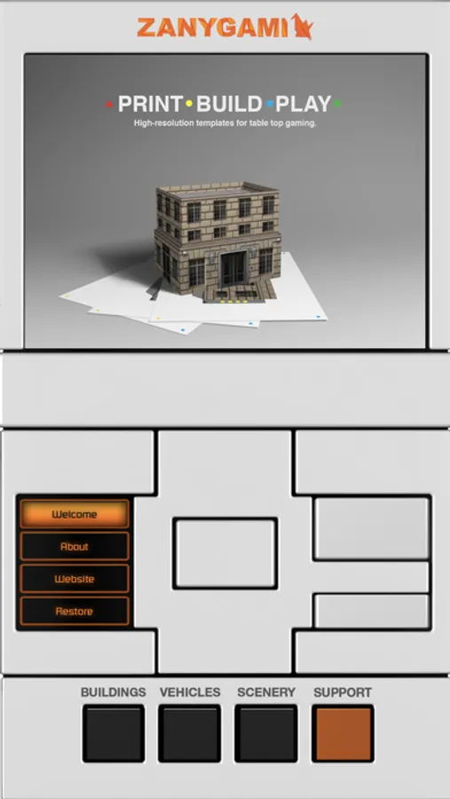 Ever want some extra scenery for your gaming table? Now you can have great looking paper craft scenery you print yourself, directly from your iPad! Zanygami models are high quality templates that when cut out and glued together produce great looking scenery for all your war gaming and scenery needs.