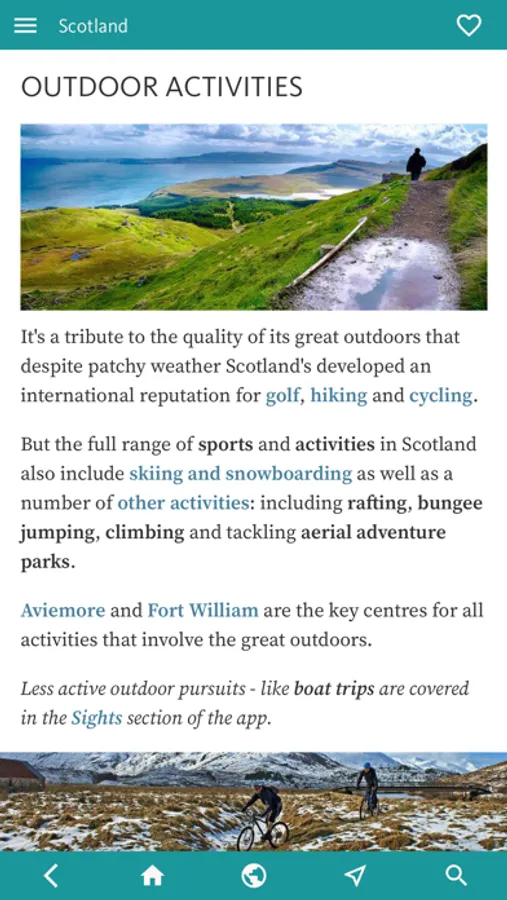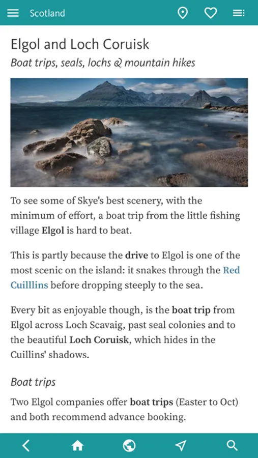 The app also groups Scotland’s finest sights and attractions by INTEREST and ACTIVITY so no-one misses a highlight they'll love. So if it’s HISTORY or WHISKY you’re after; or you want to travel in LUXURY or with KIDS, you can be sure you'll get a good heads-up.