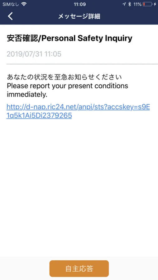 通知に記載されているURLから、バックグラウンドで取得している安否確認リストから、簡単に安否応答をすることができます。