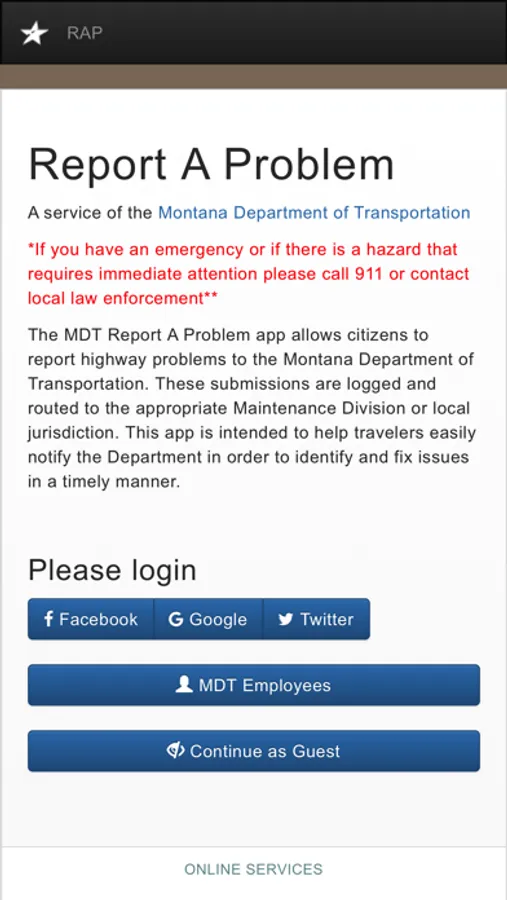 MDT Report a Problem is an official app of the Montana Department of Transportation.