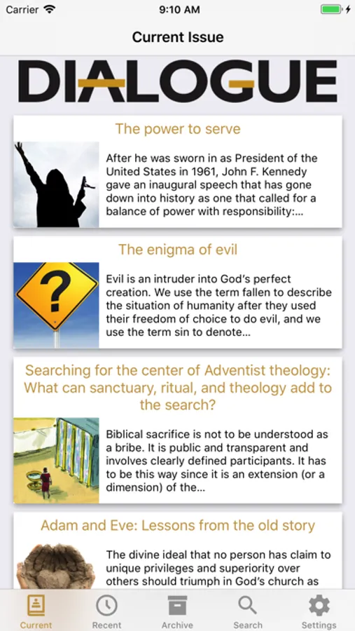 Dialogue seeks to nurture an intelligent, living faith; deepen the readers’ commitment to Christ, the Bible, and Adventist mission; articulate biblical responses to contemporary issues in the arts, humanities, philosophy, religion, and the sciences; and offer practical models of Christian service and outreach.
