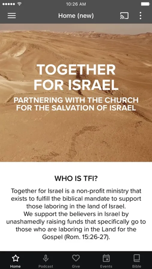 The Together for Israel App was created with the Subsplash App Platform.