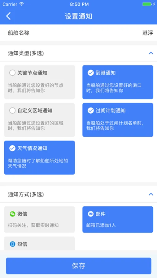 5、船舶关键动态提醒,支持微信、邮箱、手机免费接收提醒消息。