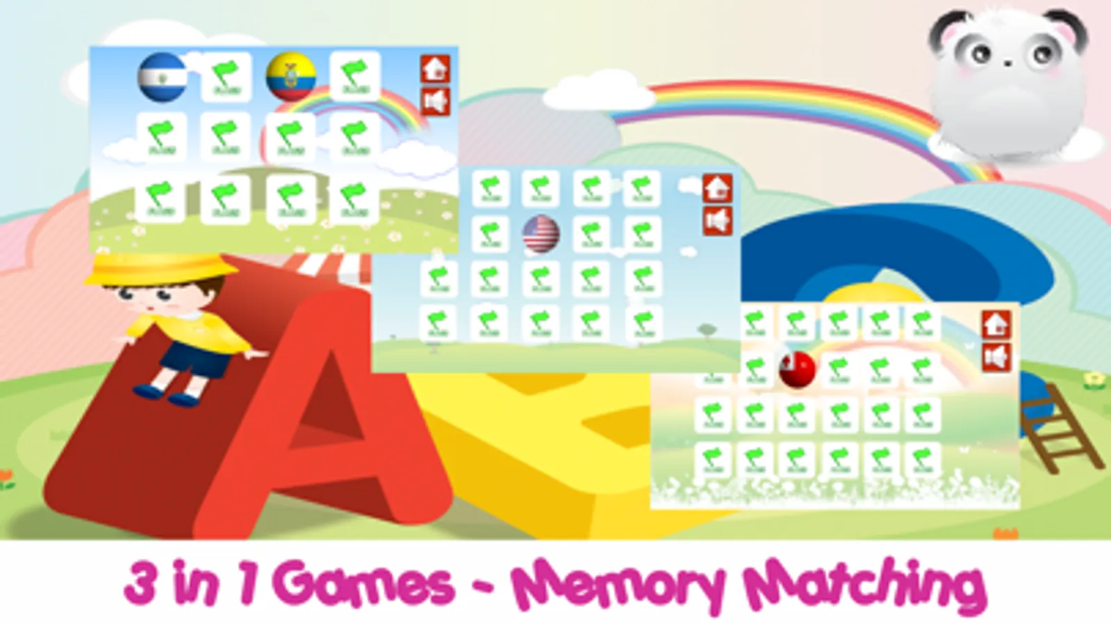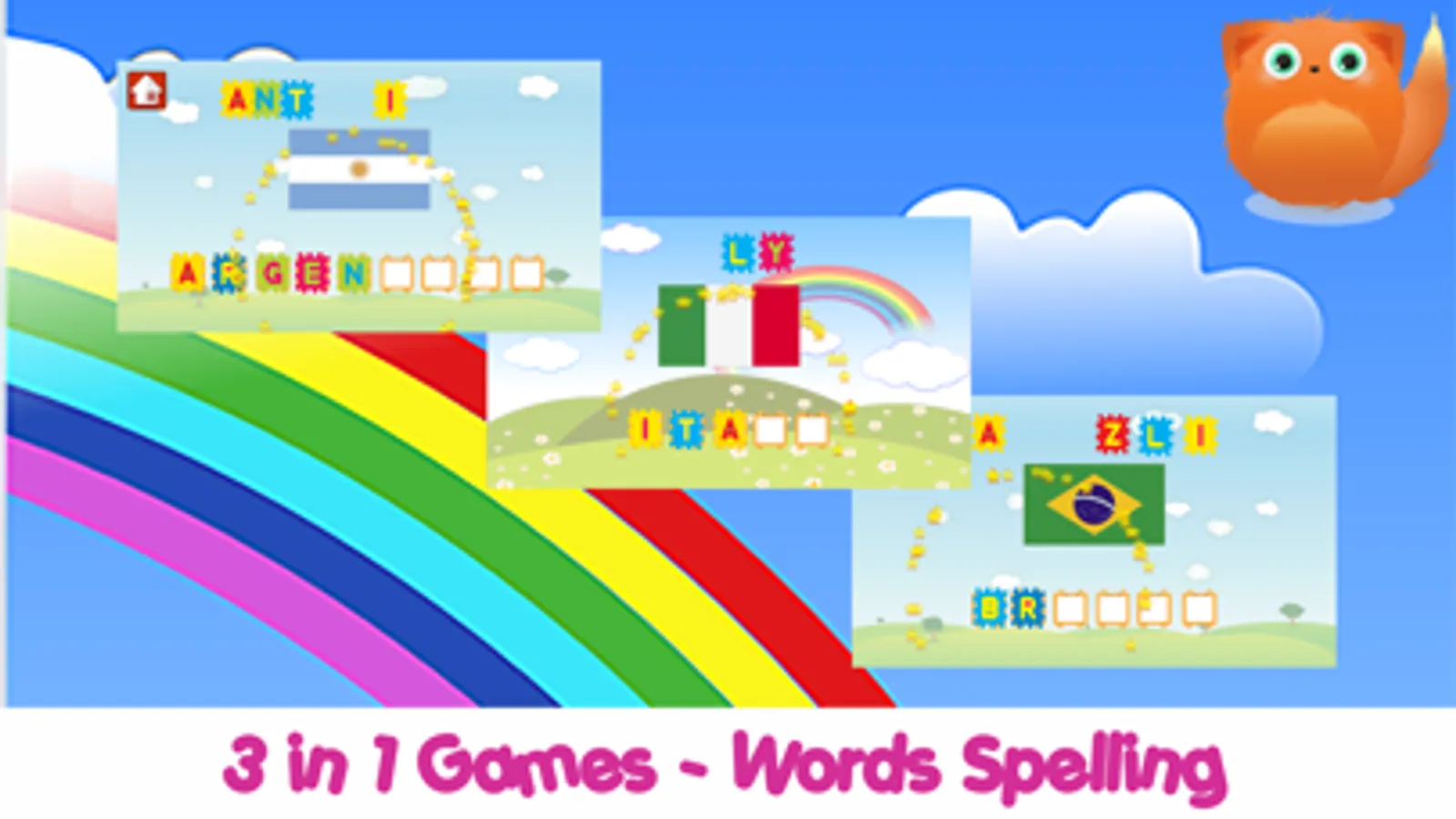 A new learning game for toddlers and preschool children with pictures to learn to recognize and spell words. World flags name is 3 in 1 fun educational games for kids to learn about top countries international flags of the worlds sush as french flag, german flag, italian flag, uk flag, us flag, australian flag, spain flag and more. There are 3 games modes for worlds flags name vocabulary learning, words spelling & flashcard memory matching with sounds of each flags name and alphabet letters. This game will boost spelling games for 1st, 2nd, 3rd, and 4th graders free reading.