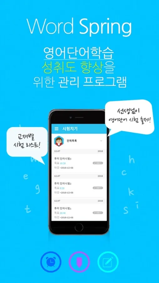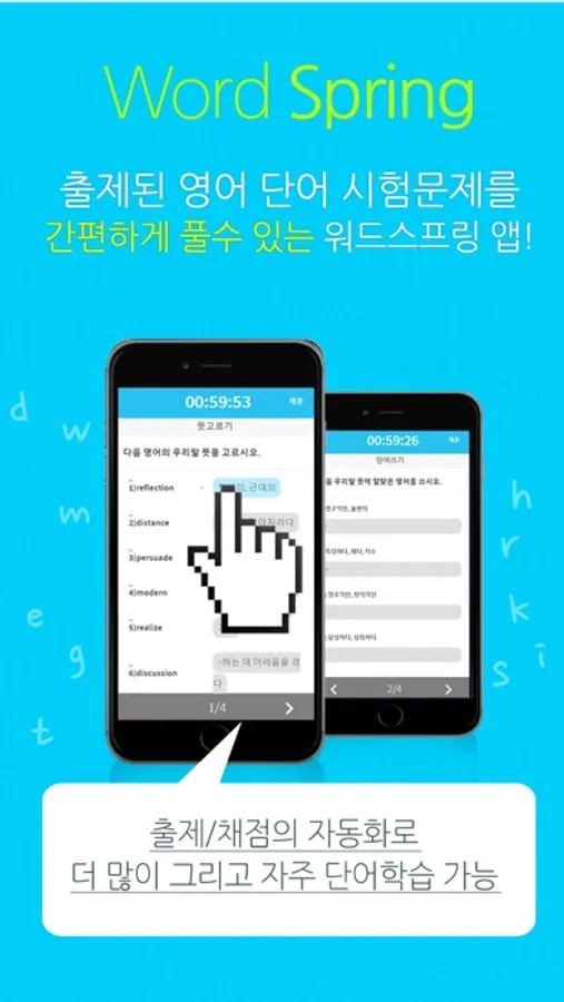 학생은 앱에서 풀고 채점받는 앱입니다.