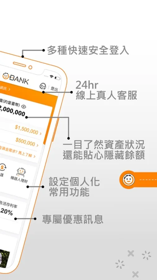 O-Bank致力於為您提供低門檻、無疆界、零時差的金融服務立即下載O-Bank,存錢、轉帳、換匯、繳費、貸款、投資,一個APP全部搞定。