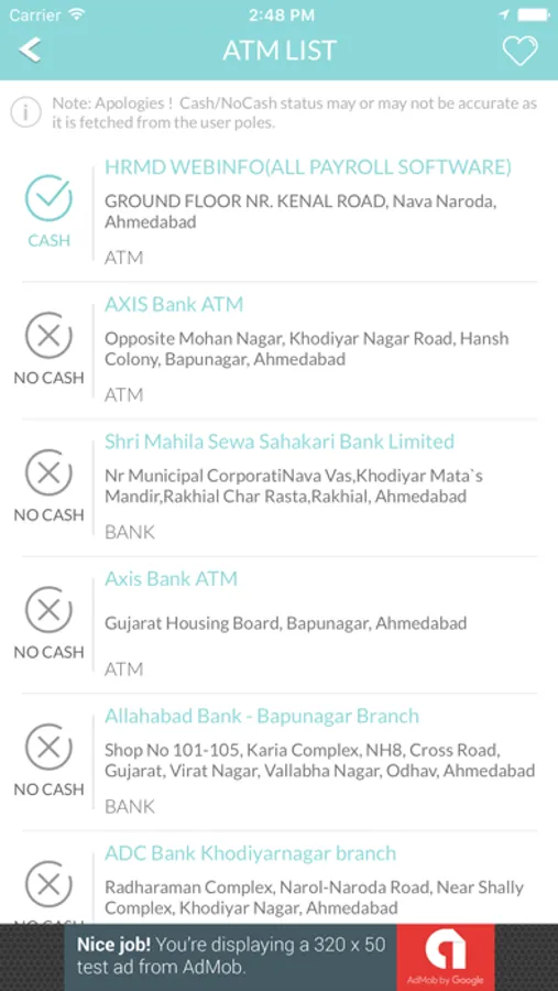 Here you get updates through the real time live status of the ATMs in your neighbourhood which has money or not, through the crowd-sourcing based on the user’s feedback and you from which you get to know which of the ATMs have cash, which of them don't. You can also get information like the wait time and length of the queues.