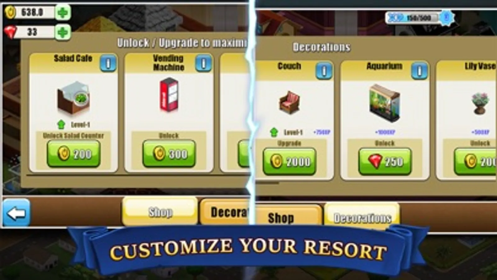 • Enjoy every bit of managing your resort and watch it grow before your eyes. Your actions define how you'll be earning.