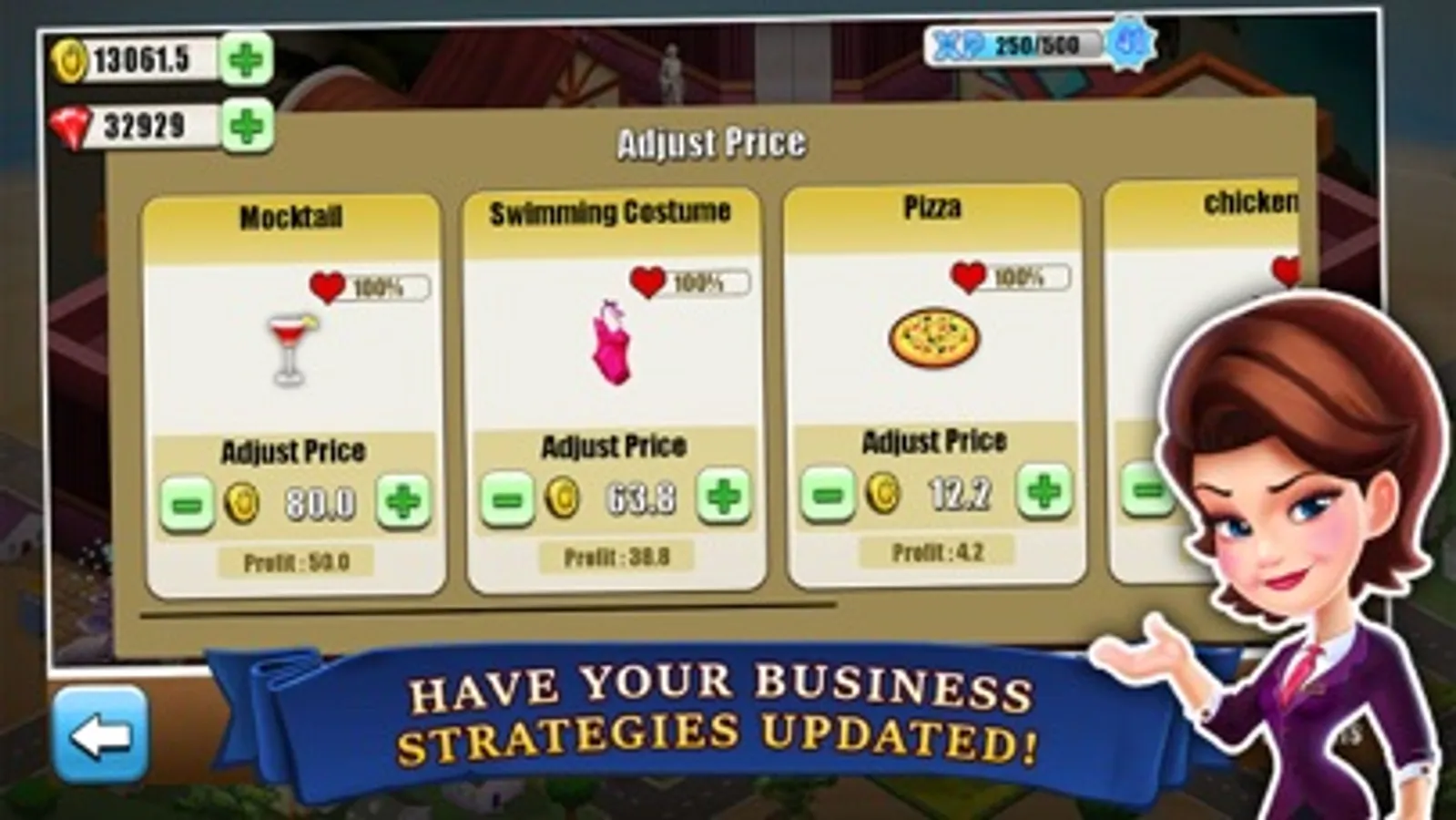 The quicker you serve food, happier the customers will be. Each customer will pay money for their stay, use the money to buy upgrades, decorations or to open new island resorts in paradise city and convert your resort to a super mall.
