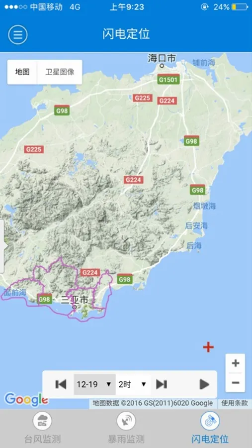 4.“灾害天气”提供台风监测、暴雨监测、闪电定位查看服务;