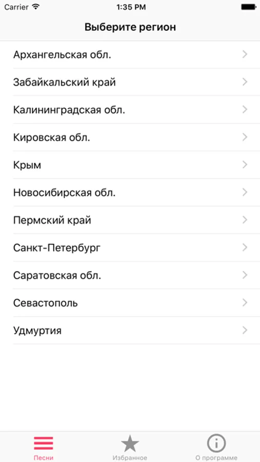 - Выбор региона, песни которого вы хотели бы выучить или просто спеть/сыграть на гитаре;