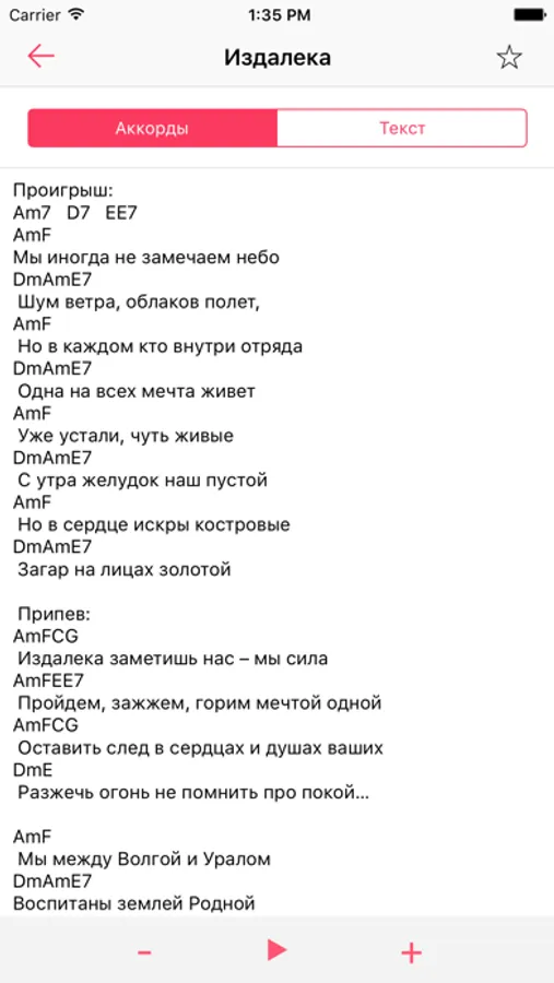 - Два вида текста песни: с аккордами и без аккордов (для гитаристов и поющих);