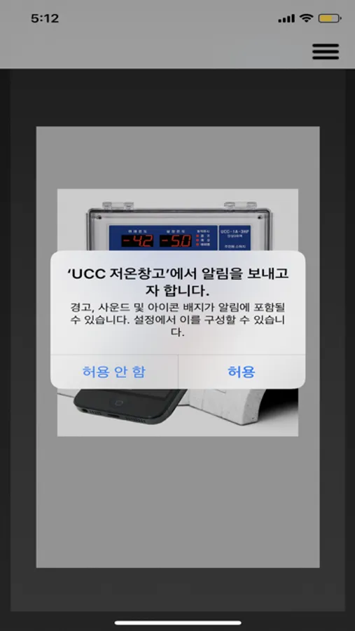 UCC 저온창고 컨트롤러에서 점검사항 발생시 사용자의 아이폰으로 알림 메시지가 전송 됩니다.