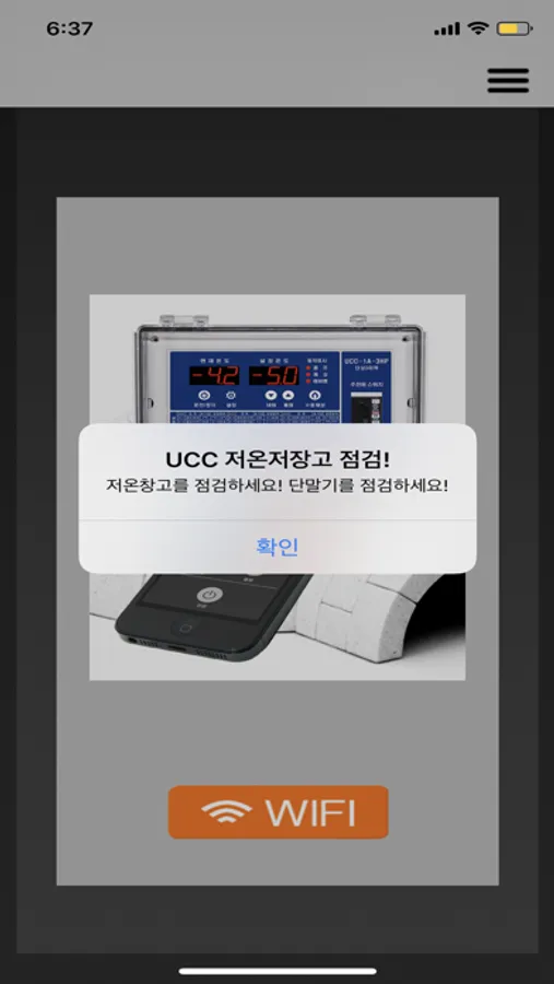 UCC 저온창고 컨트롤러에 와이파이 모듈이 설치 되어 있어야만 아이폰 앱에 와이파이 모듈을 연동하여 사용 가능합니다. 아이폰 앱 단독으로는 사용이 불가능 합니다.