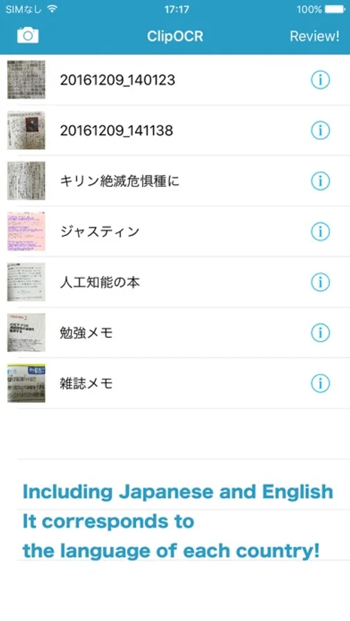 The definitive version of the OCR Japanese app is back with a power-up! ClipOCR is an app that uses a camera to read analog text such as printed materials and handwritten characters through "Artificial Intelligence", converts it into editable digital data text, and can be shared. It supports almost all languages, including vertical and horizontal Japanese and English.