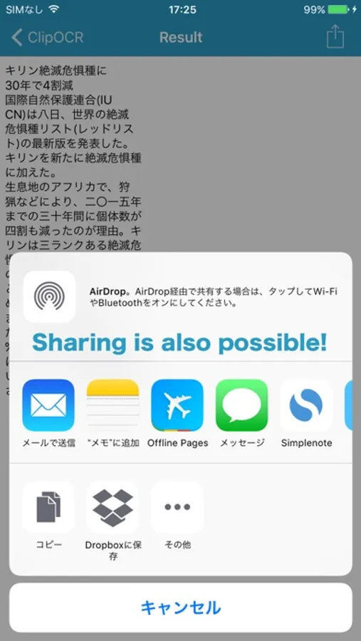 ・You can also share with other apps such as Evernote, LINE, Simplenote, Dropbox, and Google Drive.