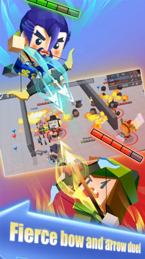 1.Control the motion by virtual control lever. Defeat your opponents with your arrows;
