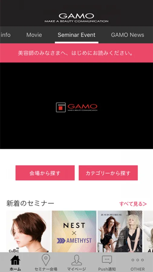 などなど、美容師様の欲しい情報をいち早くお届けするセミナーセミナー・イベントアプリです。