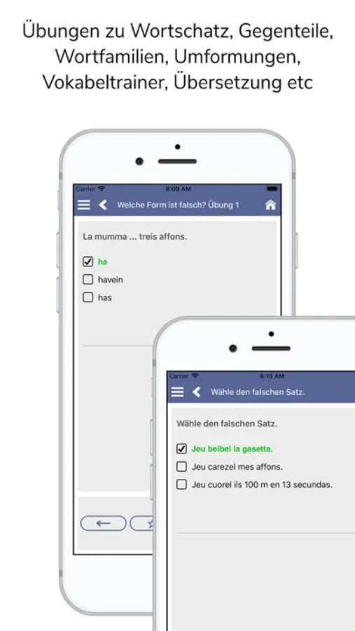 Alle Übungen sind kurz und einfach gehalten, so sind Fortschritte garantiert. Ebenfalls deckt das Programm die wichtigsten grammatikalischen Themen ab. Zudem steht ein Wörterbuch mit über