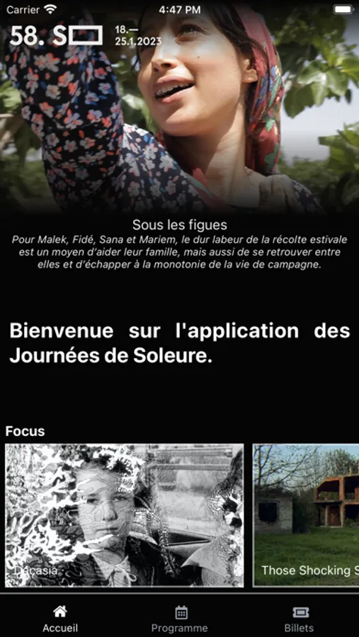 Seit über 50 Jahren präsentieren die Solothurner Filmtage jeweils im Januar eine Auswahl von Schweizer Filmen. Der Anlass ist Motor der Schweizer Filmkultur und Ort der Begegnung zwischen Publikum und Filmschaffenden. Die Werkschau des Schweizer Films wurde 1966 gegründet. Mit über 65’000 Eintritten zählt der Anlass zu den renommierten Kulturveranstaltungen der Schweiz.