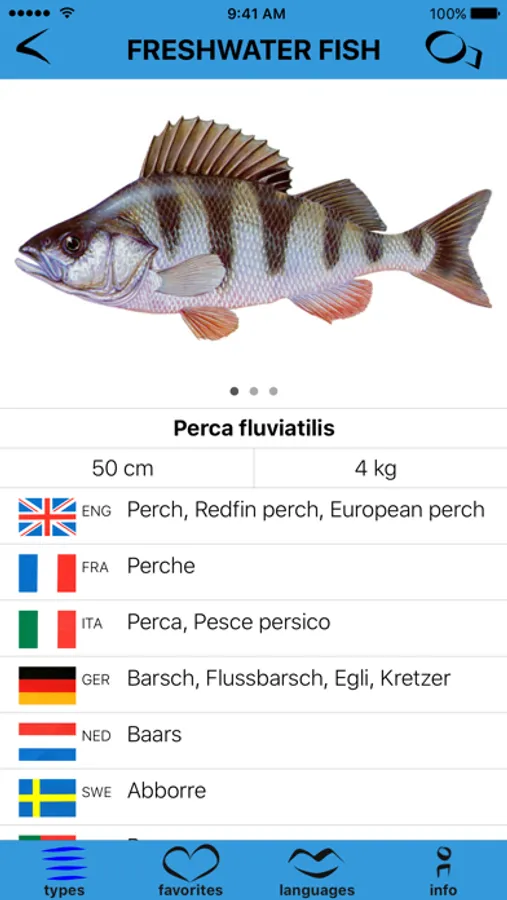Names of each species in Latin, English, French, German, Dutch, Swedish, Italian, Spanish, Catalan, Portuguese, Greek, Turkish and Japanese. Illustrations of each.