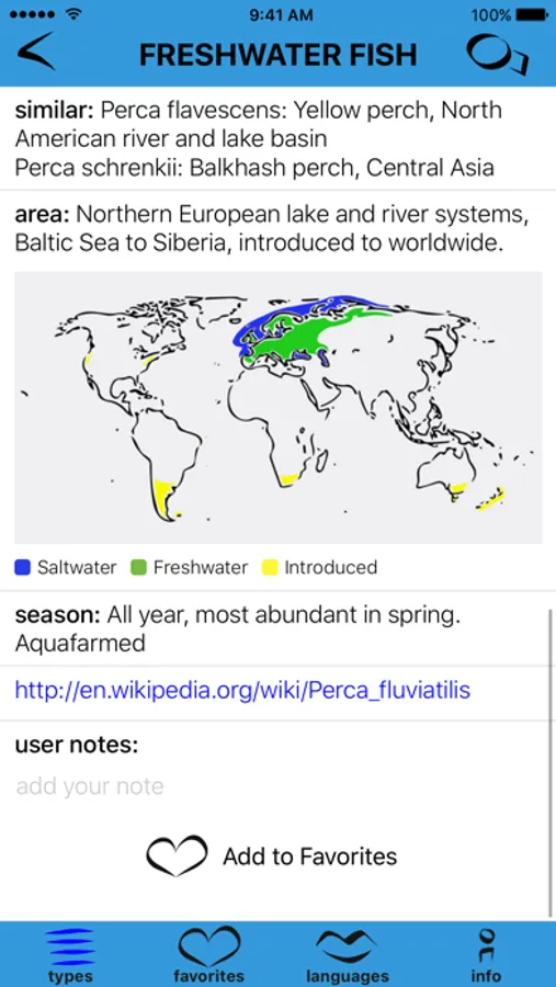 Easy to use for young and old, meant to teach and entertain, with a link to Wikipedia for each entry. Also featuring “user notes“ and “add photo” functions allowing users to add personal information locally.