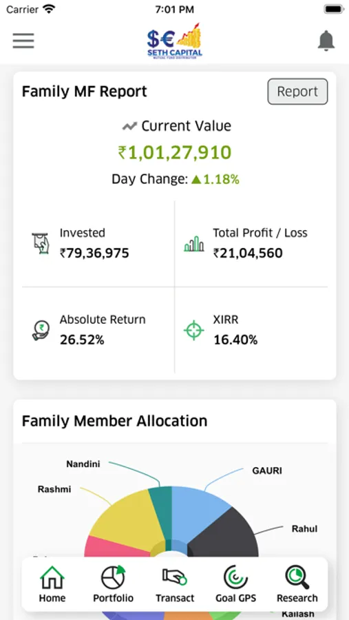 Seth Consultant is a financial application where investor can see his investment status like Portfolio, Goal tracker, Calculator, Wealth report in certain view with graphical representation etc. these all things for whose user which is invest in mutual fund.