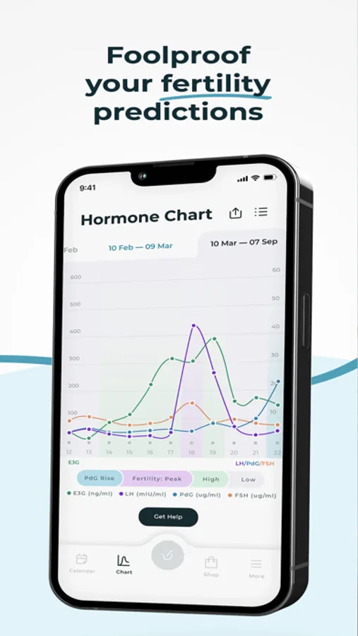 1. Identifies 6 fertile days in your cycle by measuring Estrogen & Luteinizing Hormone levels (3x more than ovulation kits)