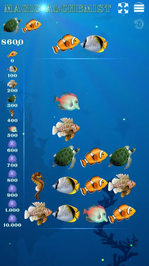 Magic Alchemist Under the Sea follows the rules of the classic Magic Alchemist and sends the player to a relaxing dive. A free magical game for hours of fun. If you want a relaxing but challenging experience, this easy-to-learn game is just the thing.