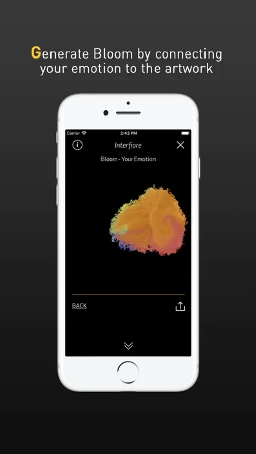 CUBO app for iPhone guides you through the ongoing exhibition at Spazio Arte, Centro Unipol Bologna. Express your emotions and generate a Bloom: a dynamic artwork that creates a link between your emotional perception and the exhibited artworks. Browse through the collective Bloom visualizations created by the public and compare the global emotional spectrum with your own.