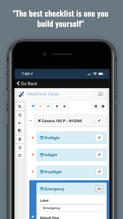 Structured sections - Unique Checkbar - Audio CoPilot* - Two-way Audio CoPilot* - Sketch Pads* - Photos* - Form Fields* - Create and Edit in the Cloud Editor - Crowd-sourced Content - Three Different Layout Modes* - Completion Status - Mandatory Items - Comments and Notes - Flight Timer - History of all sessions* - Challenge/Response Mode* - Rich Content - Several Print Templates* and many more features!