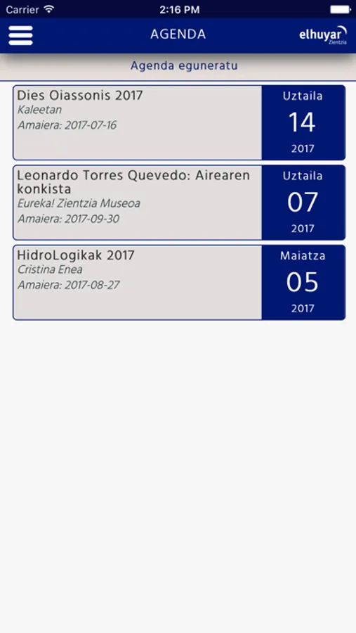 Albisteak eta agendako ekitaldiak zientzia.eus webgunetik hartzen ditu. Zientzia.eus webgunea
