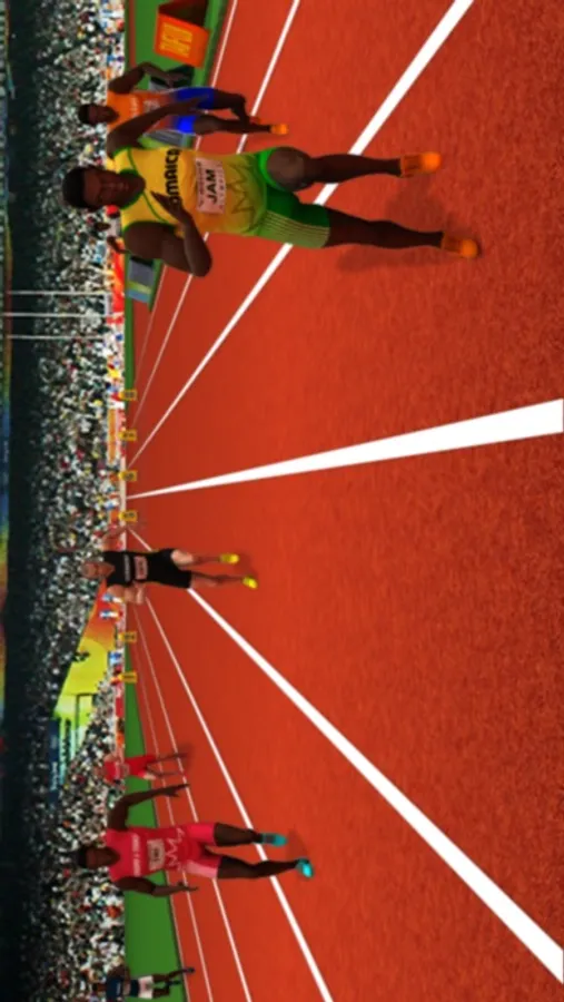 Your object is to compete against other international track and field athletes by running as fast as you can along the 100m track.