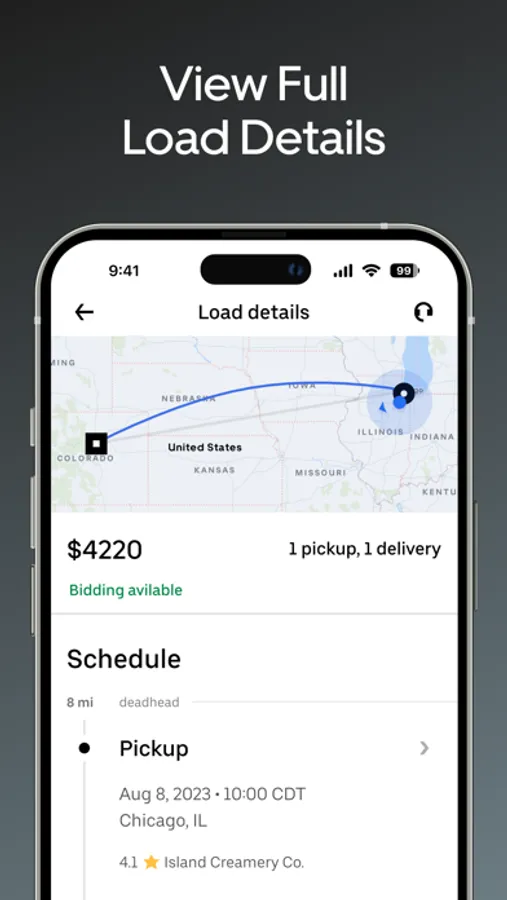 • Instant RateCon & in-app POD (Proof of Delivery) submission