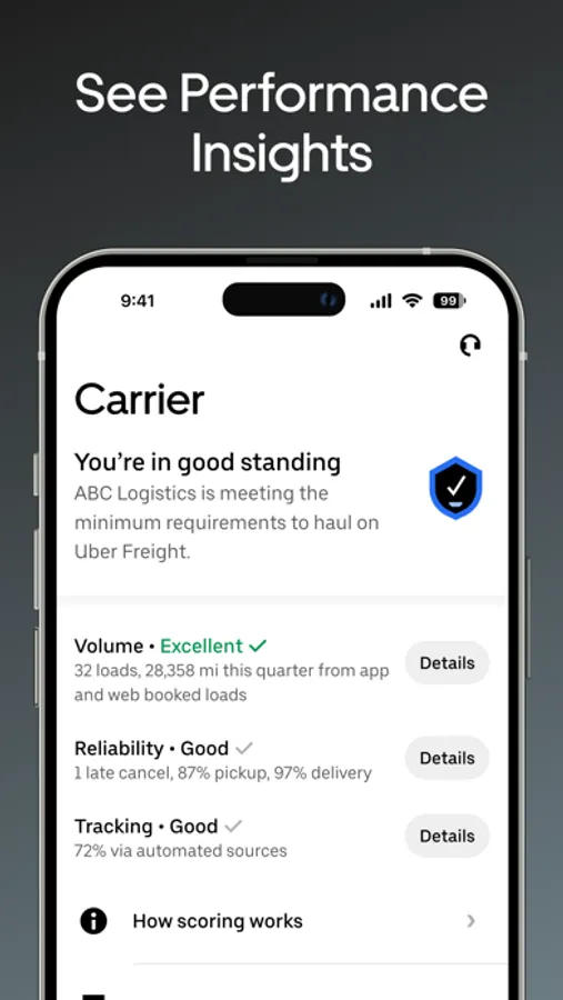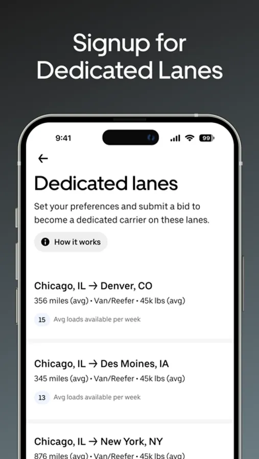 Sign up for Uber Freight to begin accessing our exclusive loads and in-app booking upon carrier approval.