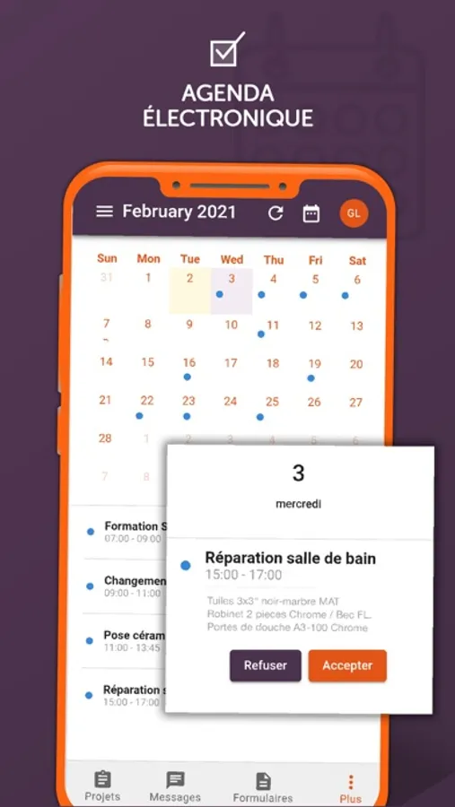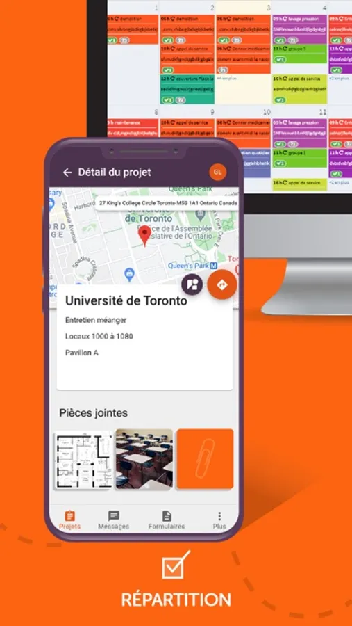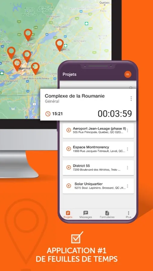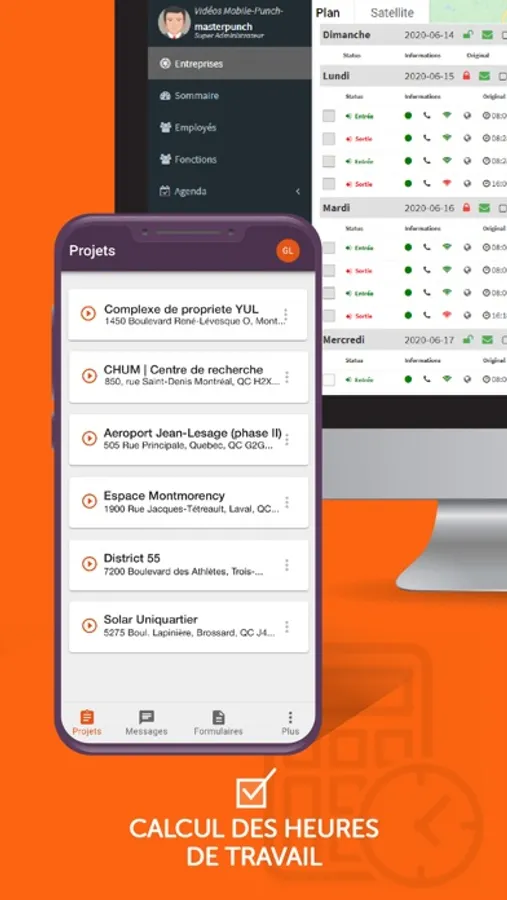 - La position exacte de l’employé sera sauvegardée, ce qui permet de valider la présence sur les sites de projets.