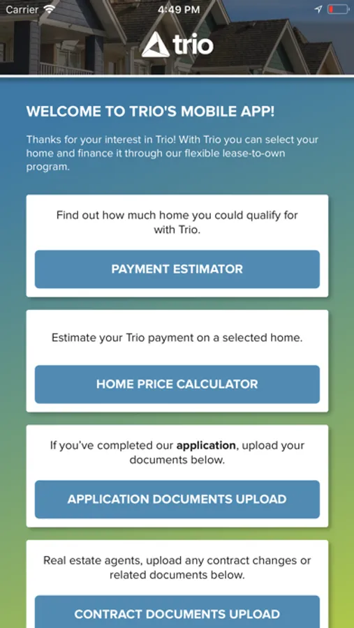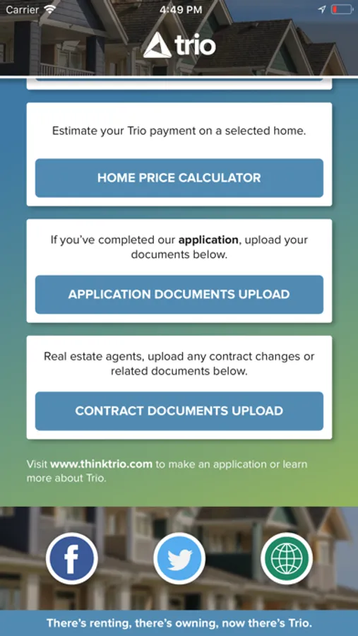 By using our mobile tool you will be able to learn Trio’s home price, how much you will potentially be qualified for, and speeding up your application process. It’s free. It’s easy. It’s here simply to help you get into a home faster and easier. We believe life doesn’t need to be so complicated. And neither does finding your home.