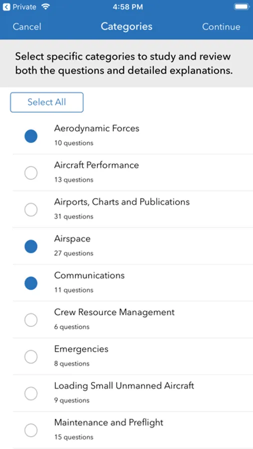 To help you prepare for the knowledge areas covered on the Remote Pilot knowledge test we've included the following resources in the app: