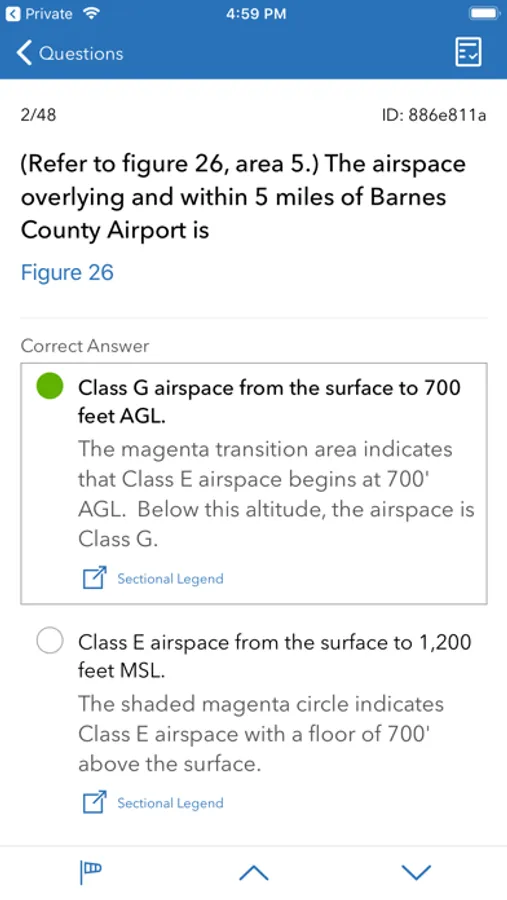 Test mode randomly generates a 60-question session from the entire database of published FAA test questions, simulating the real Remote Pilot test. After answering all the questions, you’ll be given instant results, and have the option to review either all the questions, or just missed questions. Included in the review session are the same detailed explanations for why each answer is correct.