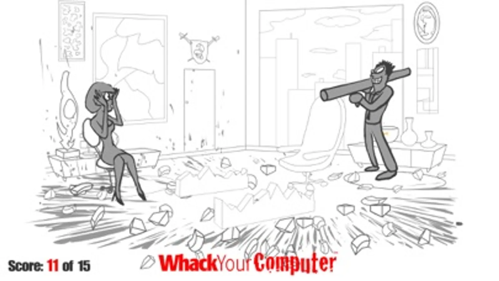 You don't need to feel frustrated ever again, simply tap on different items in the office and find all 15 ways to whack the computer.