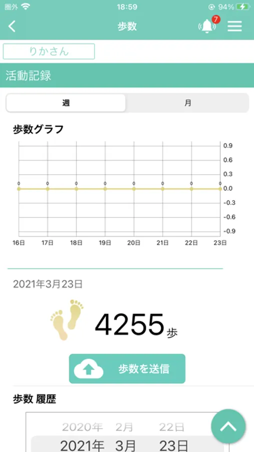 アプリをスマホに入れて持ち歩けば、毎日の歩数や歩いた距離が自動で記録されます。