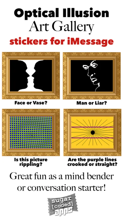 Have your our own personal art gallery of amazing optical illusions...as imessage Stickers!