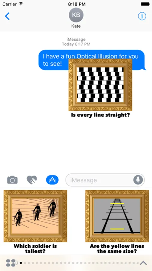 You can peel & place these illusion stickers on ANYTHING in your iMessage conversation... text bubbles, images, or even other stickers. Or just send them on their own.