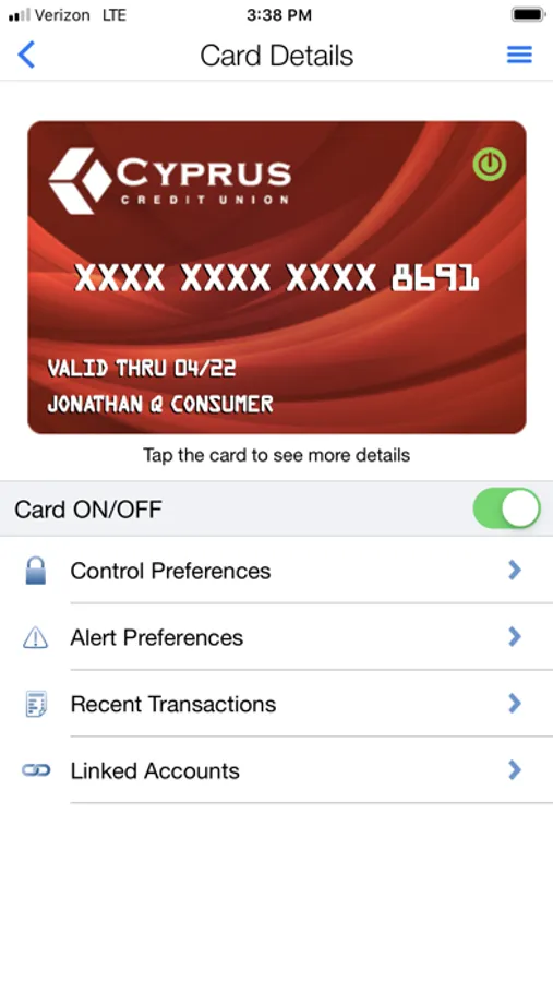 Card Control from Cyprus Credit Union puts you in charge of your cards. Card Control allows you to turn your Cyprus Debit or Credit cards off and on with a simple swipe and get real time notifications anytime your card is used. You choose the locations, amounts, merchants, and transaction types allowed on your Cyprus Credit or Debit card. Plus, with location controls you can limit transactions to your current location or regions that you choose. Card Control from Cyprus Credit Union - take charge of your card today!
