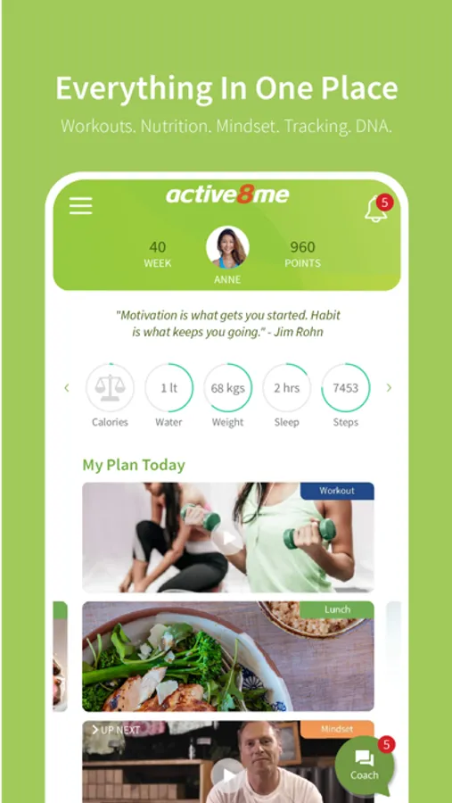 * Everything in one convenient place – Workouts + Nutrition + mindset + Tracking + DNA.