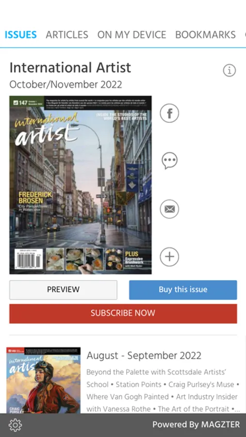 International Artist takes you inside the studios of the world’s best artists. The magazine displays practicing artists describing their approach and work process in all painting mediums.
