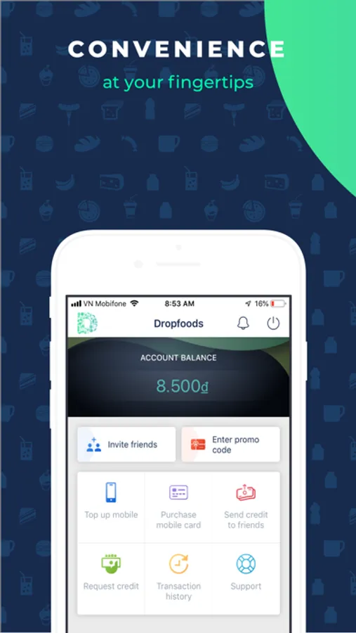 Let’s discover our Dropfoods app to simply purchase your favourite snacks & drinks, and top up your mobile at the Dropfoods vending machines on the go. Plus you can place an order now in our app, we deliver it to you just in a minute!