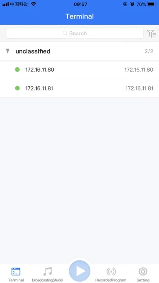 It is mainly to view the terminal information ,obtain music source list and create a local list, to quickly start broadcast or intercom to a single terminal. It provides a studio function, to test the recording before broadcast,bringing users easier and more convenient operation and control to the terminal.