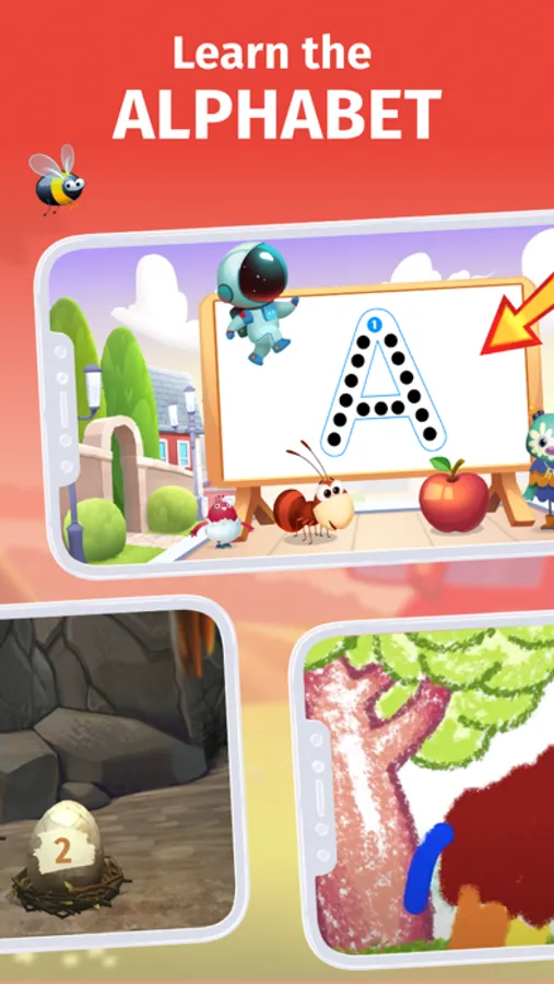 Interactive Alphabet Cartoon: this is a fun educational ABC game with animals and dinosaurs that teaches kids the alphabet and phonics in a fun, casual way. This game also develops spelling, reading, handwriting and letter tracing skills.